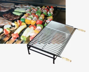 Rešetka za roštilj – inox rešetka 76 × 50,5 cm s tacnom i nosačem
