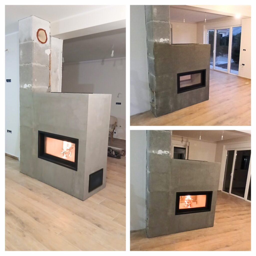 Im Herzen der Stadt Pag, in einem modernen Haus in unmittelbarer Meeresnähe, haben wir einen eleganten Innen­raum­tunnelkamin geschaffen, der Wohnzimmer und Küche auf funktionale Weise trennt – und dennoch eine gemeinsame, warme Einheit bildet. Der Auftraggeber wünschte sich klare, minimale Linienführung und eine maximale Sicht auf das Flammenspiel von beiden Räumen – ideal umgesetzt mit dem Austroflamm Brennzellen­system 75×39 in Tunnel­ausführung.