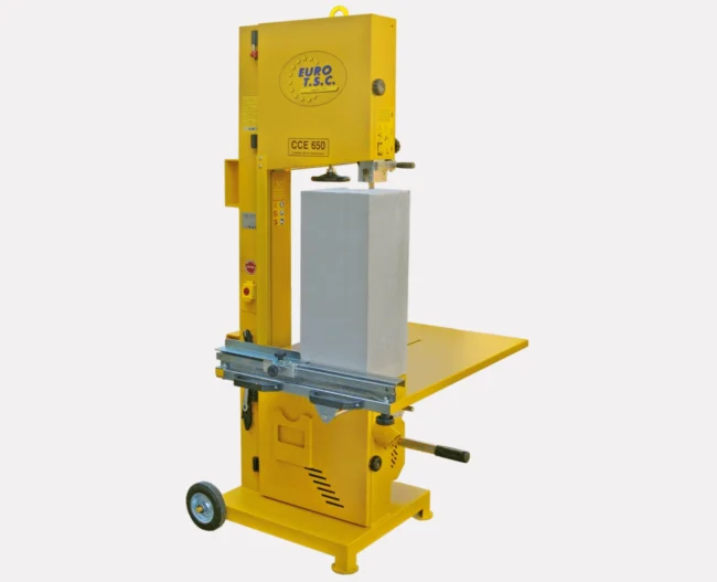 Sie führt sowohl gerade als auch quer verlaufende Trockenschnitte ohne Wasser präzise aus. Mithilfe ihres Messwinkels sind für sie auch schräge Schnitte – vom Sägeband aus links- wie rechtsgeneigte – kein Problem.
