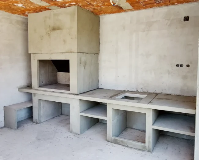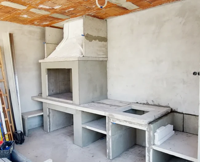 Moderne Garten-Grillküche im Nebengebäude – Feuerraum 120×85 cm