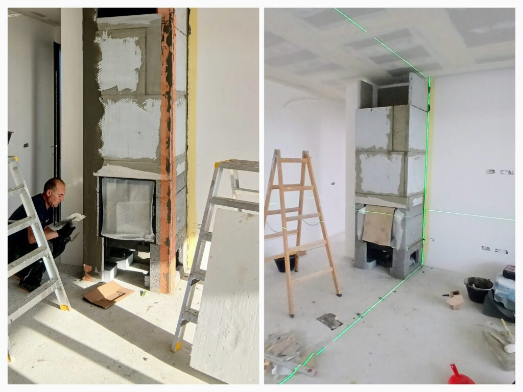 Ložište Austroflamm 65×57 postavljeno je na armirani podložni termobeton i nivelirano laserskom kontrolom.