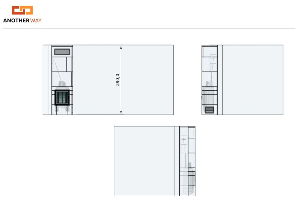 Na temelju nacrta u mjerilu izrađen je točan raspored: visina kamina 290 cm, širina 87 cm. Gabariti su usklađeni s dimnjakom i budućim elementima interijera (police, konvekcijske rozete, servisni otvor).