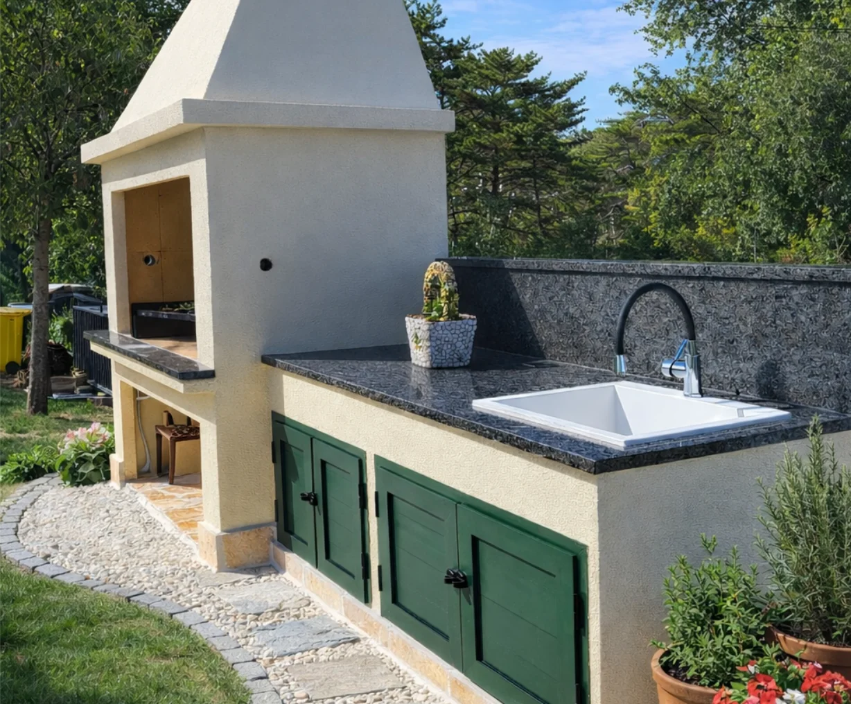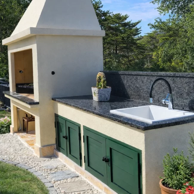 Pečenjara se može ugraditi i u natkrivene i u zatvorene prostore, ali način izvedbe ovisi o vrsti prostora.