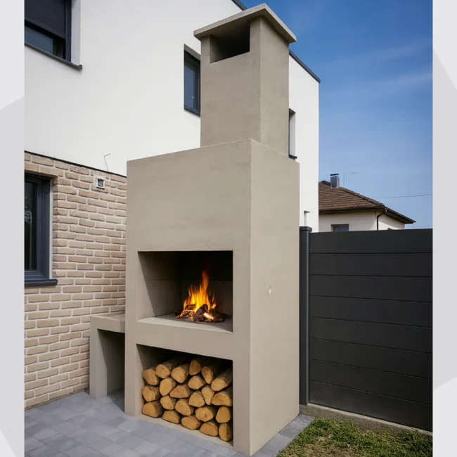 Moderni vrtni roštilj izrađen na terasi sa dodatnom radnom površinom